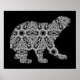 Das ist eine wunderschöne Kontur von Wildtieren in Weiß auf schwarzem Hintergrund. Dieses wilde Tier ist mit einem detaillierten, komplexen, komplex zusammengesetzten geometrischen Muster oder einer Textur gefüllt, die ursprünglich für Erwachsene zum Färben konzipiert wurde. Diese einzigartige Farbkunst ist schön und auffallend!