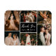 Elegante Schwarz-weiße Multi Foto Collage Hochzeitkalligraphie Vielen Dank Magnet. Stilvolle Hochzeit danke Ihnen Karte Vorlage mit sechs (6) Foto. In der Mitte schwarzer Farbblock mit dem Text "Danke" in einem handgeschriebenen Typografie-Script-Schriftart in weißer Farbe. Kleine Herzform zwischen den Namen. Einfach zu personalisieren. Hübscher Sake für Ihre Hochzeitsgäste. Wenn Sie Hilfe oder Match-Artikel benötigen, wenden Sie sich bitte an Designer!