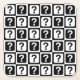 Einfarbige, schwarze und weiße Monogramm-Fragezeichen Riddle Riddler-Monochrome-Block-Printwerbung