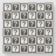 Einfarbige, schwarze und weiße Monogramm-Fragezeichen Riddle Riddler-Monochrome-Block-Printwerbung
