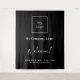 Klassischer, moderner, eleganter schwarzer Hintergrund. Personalisieren Sie Ihren Firmennamen, die Öffnungszeiten und das Firmenlogo und fügen Sie es hinzu. Weißer Text.