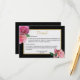 Die Details-Karte für Hochzeiten ist mit Glanz und Glanz gefüllt. Der Hintergrund ist schwarz mit einem goldenen Imitat-Glitzer-Muster, umgeben von einem vergoldeten Imitat-Glitzer-Rahmen und Rosa-Gold-Rose. Die weiße Mitte schimmert Perlpapier, aber die Käufer können einen anderen Papiertyp auswählen, nachdem sie ihn angepasst haben und bevor sie die Karte kaufen. Sie können diese Karte mit allen Informationen, die Ihre Gäste benötigen, anpassen - Anfahrtsbeschreibung, Unterkunft, Kleidung, Menüoptionen, etc.