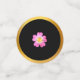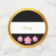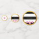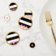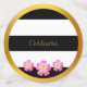 Schöne Hochzeitstisch Konfetti in Schwarz, Weiß und Gold mit rosa Blume. Schöne schwarz-weiß gestreifte Tischdecken sind mit goldenen Kreise gerahmt. "Feiern" und "Party" können personalisiert werden. Ideal für Hochzeiten, Jubiläum, Geburtstag, Abschluss, Werbeaktionen, Brautparty, Bürgerschaft Party und andere Party-Feiern.