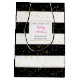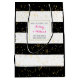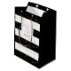 Diese Geschenktasche mit schwarz-weißem Streifen ist mit Imitat goldglänzenden Konfetti ausgestattet und kann von Ihnen personalisiert werden und dann mit nachdenklichen kleinen Geschenken für Ihre Hochzeitsgäste aus der Stadt gefüllt werden.