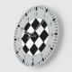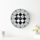 Eine Wanduhr mit einem Rennthema aus schwarz-weißen Quadraten auf dem Gesicht, schwarzen Zahlen und den in schwarz auf grau markierten Minuten. Klicken Sie auf Anpassen, um Hintergrundfarben und mehr zu ändern.