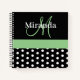 Schwarz-weiße Green Monogram Script Polka Dots Notizbuch