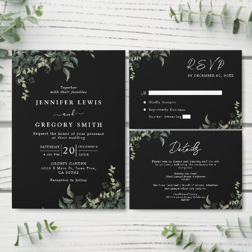 Black White Greenery Botanical Watercolor WeddingDesignt von Rajith Dilan Samarawicrama