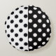 Schwarz-weiße halbe Farbtrennung inverse Polka-Pun Rundes Kissen