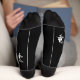 Schwarz-weiße Fliegerei mit niedlichen Halloween Socken. Weiße Grafiken auf schwarz festem Hintergrund. Unisex. Ideal für Kinder und Erwachsene gleichermaßen.