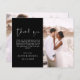 Budget Hochzeit Dankeschön Karten, die ein Foto auf der Vorder- und Rückseite haben. Die Dankeschön-Karten enthalten eine moderne, handgeschriebene, kursive Schriftzeichen-Typografie, die elegant, einfach und modern nach Ihrer Hochzeitsfeier zu benutzen sind.