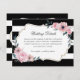 Schwarz-Weiß gestreifte, florale Beipackkarte. Matching-Elemente verfügbar. Diese blumengeschmückte Eintrittskarte ist einfach zu personalisieren, um Ihren Gästen wichtige Hochzeitsdetails zu bieten.