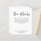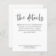 Einfache Schwarz-Weiß-Skript Hochzeitsinformationen. Eine Alternative zu den Haushaltspreisen. Erhältlich in einem SEMI GLOSS 110lb CARD STOCK, welches die Standardoption ist (empfohlen für Einladungen), ODER einem SATIN FINISH 80lb THINNER PAPER STOCK (ideal für Gehäuse). Umschläge sind optional und etwas größer als die Kartengröße. Einfache Eleganz, um Ihren Gästen Informationen zu geben, die sie für Ihren Hochzeitstag benötigen, mit Set Typografie in schwarz für den Haupttitel The Details ergänzt die Erholung des Textes, die Sie leicht personalisieren können.