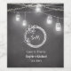 Schwarz-weißes Weinetikett mit Mason Jar String Lights auf einem schwarzen Brett/Chalkboard Hintergrund.