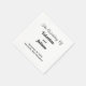 Papierservietten mit schwarzem Text auf weißem Hintergrund für Paare, die eine klassische und zeitlose Farbgebung suchen, die zu verschiedenen Hochzeitsthemen passt. Diese sind auch geeignet für Paare, die ein textbasiertes Design ohne Hintergrund-Elemente bevorzugen, um die Lesbarkeit zu verbessern. Der schwarze Text, der auf dem weißen Hintergrund kontrastiert, verbessert ebenfalls die Lesbarkeit. Der Text ist zentriert ausgerichtet und die verwendeten Schriftarten sind Kalligrafie, Script und Sans Serif. Kalligrafie- und Script-Schriftarten werden verwendet, um das Design zu verbessern, während die Sans-Serif-Schriftart verwendet wird, um die Lesbarkeit zu verbessern. Passen Sie es an, indem Sie den Namen der Braut, den Namen des Bräutigams, das Datum und den Ort der Hochzeit eingeben. Sie können auch die Formulierung im Design-Tool ändern, einschließlich Schriftstil, Schriftfarbe und Hintergrundfarbe. Bitte überprüfen Sie das Erscheinungsbild nach der Texteingabe. Wenn Ihnen das Erscheinungsbild gefällt, können Sie jetzt Ihre Bestellung aufgeben. Wenn Sie den Text neu skalieren oder neu positionieren müssen, passen Sie dies bitte im Design-Tool an. Papierservietten, um die Hochzeitstisch