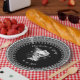 Eine elegante schwarz-weiße Spitzen- und Blumenspulenplatte. Ideal für Hochzeiten, Verlobung und Jubiläum Party Geschirr.