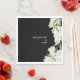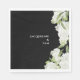 Schwarz mit White Hydrangeas Hochzeitsnapskine. Weiße Schrift. Modernes Design und Schriftart. elegant. Schwarz und Weiß. Geburtstag.