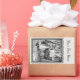 Dieser Rechteck-Aufkleber ist weiß mit einer Schwarzweißillustrierung der kleinen roten Reithaube, die mit dem Wolf im Wald in einem verzierten schwarzen Rahmen spricht. Passen Sie Ihren Text mit der Vorlage an.