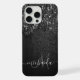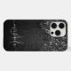 Schwarz-weiße Imitate Glitzern rustikale Holz Monogram iPhone 15 Fall. Personalisieren Sie Ihre individuelle Eingabe und Ihren eigenen Namen. Graues, schwarz-weißes Glitzer rustikales Holz. Elegante Imitate funkelnd Glitzern mit gebrochenem rustikalem Holzstück darüber. *Foto von Glitzern Glitzer!