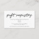 Eine einfache minimalistisch weiße Hintergrund und schwarze Skript Text "Geschenkregistrierung" Hochzeitsgeschenk Registrierung Gehäuse Karte, die auf Ihre Informationen angepasst werden können. Passen Sie den Text an und machen Sie ihn zu Ihrem eigenen. Ideal für Hochzeitskarten für eine elegante, moderne Hochzeit.
