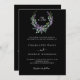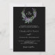 Schwarzer Hintergrund. Ein Blumenkranz aus Lavendel-Blume und einem Aquarell aus Eukalyptusgrün. Personalisieren Sie Ihre Monogramm-Initialen, Namen und Details und fügen Sie diese hinzu. Weißer Text. Zurück: Fügen Sie Ihre Hochzeitswebsite url zum QR-Code für Details und/oder UAWG hinzu.