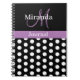 Schwarz-weiße Lila Monogram Script Polka Dots Notizblock