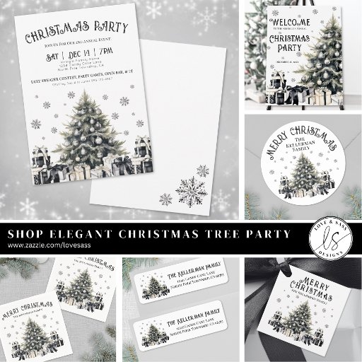Elegant Black White Tree Snowflake Christmas PartyDesignt von Jo P.