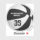 Dieser Basketballaufkleber zeigt das realistische Bild eines Basketballs, der abwechselnd schwarz-weiß aufgefärbte Paneele aufweist, auf denen man den Namen und die Trikotnummer des Athleten sowie den Namen der Schule oder des Clubs und des Maskottchens personalisieren kann - durch katz_d_zynes