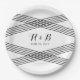 Einfache und elegante moderne Deko Wedding Paper Teller mit gestreiften, kreuz-kreuz gestreiften Deko-Design in Schwarz-Weiß. Diese klassischen Teller lassen sich einfach mit Ihren Hochzeitsdetails abstimmen. Klicken Sie für weitere Anpassungsoptionen auf die Schaltfläche Anpassen.