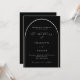 Eine elegante Einladung zur Hochzeit. Ein schwarzer Hintergrund mit einem Bogen auf der Vorderseite.