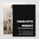 Mit diesem minimalistischen Schwarz laden Sie Ihre Freunde und Liebsten zu einer Hochzeitsempfehlung mit weißem Text ein, die ein Foto der Neuvermählten auf der Rückseite enthält, um Ihre Freude an Ihrer jüngsten Ehe zu teilen. Für beste Ergebnisse, die Ihrem gewählten Bild auf der Rückseite der Einladung entsprechen, wird es auf ein 5 x 7 Verhältnis passen.
