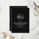 Ein minimalistisches Schwarz-Weiß Monogramm Initialen Hochzeitsdesign. Ein einfaches Design, das die Initialen und Namen der Braut und des Bräutigams verwendet, um ein elegantes klassisches Monogramm zu erstellen. Ein charmantes, minimalistisches mit Monogramm Design mit klassischer Schriftzeichen. Eine elegante Schwarz-Weiß-Monogramm-Initialen themed Wedding Interferary Card Design mit modernen Elementen. Auch die passenden Hochzeitseinladungen und andere Schreibwaren sind verfügbar.
