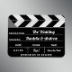 Eine lustige und einzigartige Schwarz-Weiß-Hochzeit speichern Sie das Datum Magnet Design zeigt die wichtigen Details auf einem Hollywood Regisseur Film Klappbrett / Tafel. Personalisieren Sie mit dem Namen der "Sterne" und den Details Ihrer großen "Premiere" als Ehemann und Ehefrau.