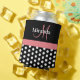 Schick und trendig mit schwarz, rosa und weiß. Immer im Stil mit Polka-Punkten. Perfektes Geschenk oder machen Sie es für sich selbst. Passen Sie sich an Ihre Wünsche an. Verwenden Sie Ihren Familiennamen oder Ihren Vornamen oder verwenden Sie Ihren eigenen Text. Wenn Sie Hilfe benötigen, um es zu Ihrem eigenen zu machen, senden Sie mir bitte eine E-Mail. designsbykatz@gmail.com