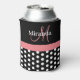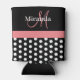 Schwarz-weiße Pink Monogram Script Polka Dots Dosenkühler