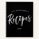 Charmantes Kochbuch in schwarz. Personalisieren Sie mit Ihrem Namen und dem Jahr. Rezepte werden in einem schwarzen Pinselskript geschrieben, wobei ein doodled Herz den Punkt über dem i ersetzt.