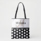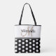 Polka-Punkte scheinen einfach nie aus dem Stil zu verschwinden. Die elegante und elegante Mischung aus Schwarz und Weiß mit Beige macht das Ganze noch angenehmer. Personalisieren Sie Ihre Tasche, indem Sie Ihren Vornamen und Ihren Anfangs- oder Familiennamen und Initialnamen hinzufügen. Sie können auch einfach Ihren eigenen Text benutzen. Sei kreativ! Perfektes Geschenk für sich selbst oder die Bestie, Tante, Mutter oder Großmutter.