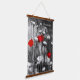 Schwarz-weiße Poppies Rote Blume Dunkle Blumenklas Wandteppich Mit Holzrahmen
