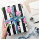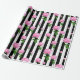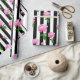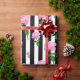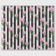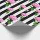 Schwarz-Weiß Streifen mit rosa Rosa Blume Stiel Retro Vintag inspirierte Musterverpackungspapier