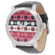 Schwarz-weiße rosa Kreissteine Streifen-Design Armbanduhr