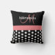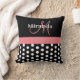 Schwarz-weiße rosa Monogram Script Polka Dots Thro Kissen