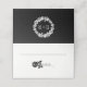 Schwarz-Weiß Rosenkranz mit Ihren Initialen Hochzeit gefaltete Begleitkarte. Diese Platzkarte besticht durch einen weißen Kranz aus Rose im Vintagen Stil mit modernem und zeitgenössischem Stil.