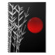 Bambusbäume und rote Sonne in schwarzem Zen-Kreis mit Tinte in traditioneller japanischer Malerei gezeichnet