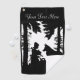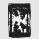 Dieses Golfhandtuch hat ein Schwarz-Silhouette-Bild auf Weiß von kleinen roten Reithaube unter Bäumen im Wald sitzen, die Blume halten, mit dem Wolf zu reden. Passen Sie Ihren Text mit der Vorlage an.
