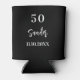 Für eine 50. Geburtstagsfeier (oder jedes Alter). Ein schwarzer Hintergrund. Geben Sie Ihren Namen, Alter, Datum ein. Der Name ist mit einem modernen handgeschriebenen Stilskript geschrieben. Weißer Text.