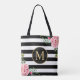 Dieses personalisierte "Romantische Schwarz-weiße Streifen Monogramm" Tote Bag ist ein toller Tasche für jeden Tag! Tragen Sie eine Tasche und gehen Sie zur Straße, zum Supermarkt, zur Schule oder zum Park. Es ist ein perfekter Weg, um Ihren eigenen Stil zu zeigen.