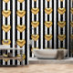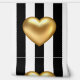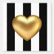 Das extravagante, auffällige und kitschige Tapete mit einem großen goldenen Herz in 3D-Effekt auf einem schwarz-weiß gestreiften Hintergrund. Hintergrundfarbe und Stripfarben können nach individuellen Wünschen bearbeitet werden