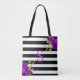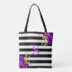 Schwarz-weiße Streifen aus lila Gold-Floral-Monogr
