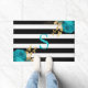 Schwarz-weiße Streifen aus türkisfarbenem Goldflor Fußmatte