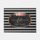 Klassische, schwarz-weiße Streifen personalisierte Türmatte - Trendy Imitat Chalkboard Rahmen mit Rose Gold Glitzer Kanten und Vintagen Stil rosa Rosa Bouquet oben. Coupels mit Monogramm Namen in eleganter Rose goldene Schrift mit einem Ampersandzeichen. Maßgeschneidertes Jahr unter der entsprechenden Rose Goldfarbe. Mit zeitgenössischem Schwarz-Weiß Streifen Muster Hintergrund. Hinweis: Alle Bilder werden gedruckt. Nicht Glitzer oder Tafel. Elegante, blumengeschmückte Schwarz-Weiß-Dekoration im Freien, aber auch hübsches Hauswärmespielgeschenk für verheiratete Paare, mit Monogramm Geschenk für den Polterabend oder ein süßes Hochzeitsgeschenk. Matching florale Schwarz-Weiß-Wohngestaltung in unserem Zazzle.com/angela65 Shop.