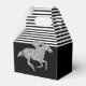 Gable Gastgeschenk Boxen verfügen über ein Racehorn in Imitate silber Glitzer auf schwarz-weiß Streifen oben und schwarz unten - ändern Sie die Hintergrundfarben auf alles! Ideal für Derby Party, Derby Brautparty, Geburtstagsparty, Ruhestand Party und mehr. PASSENDE Artikel in unserem Geschäft.
